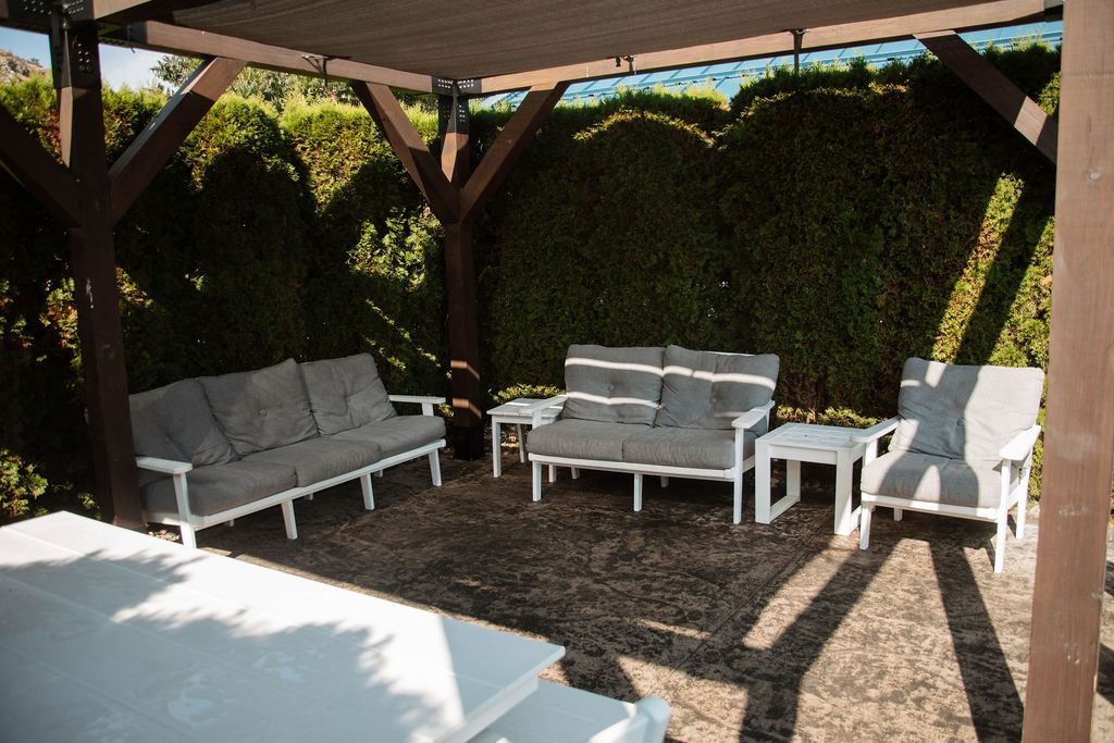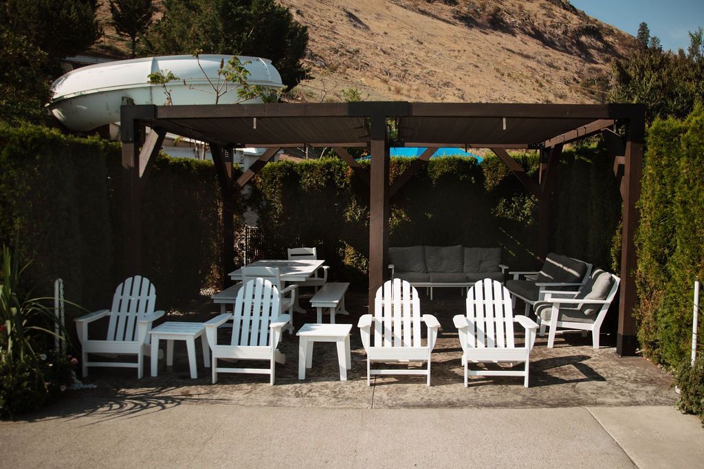 Transform your day at Slidewaters with this expansive 350 sq ft luxury outdoor great room. Under a new 12' x 18' pergola structure, enjoy a full living room set, a dining table with seating for eight, and four Adirondack chairs perfectly positioned for sunshine and conversation. Conveniently located beside Thunder Rapids and the Activity Pool, this ADA-accessible patio offers both comfort and proximity to the action.